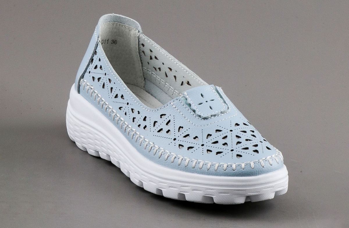 AS023-011 Туфли летние женские. нат.кожза/иск.кожа.голубой